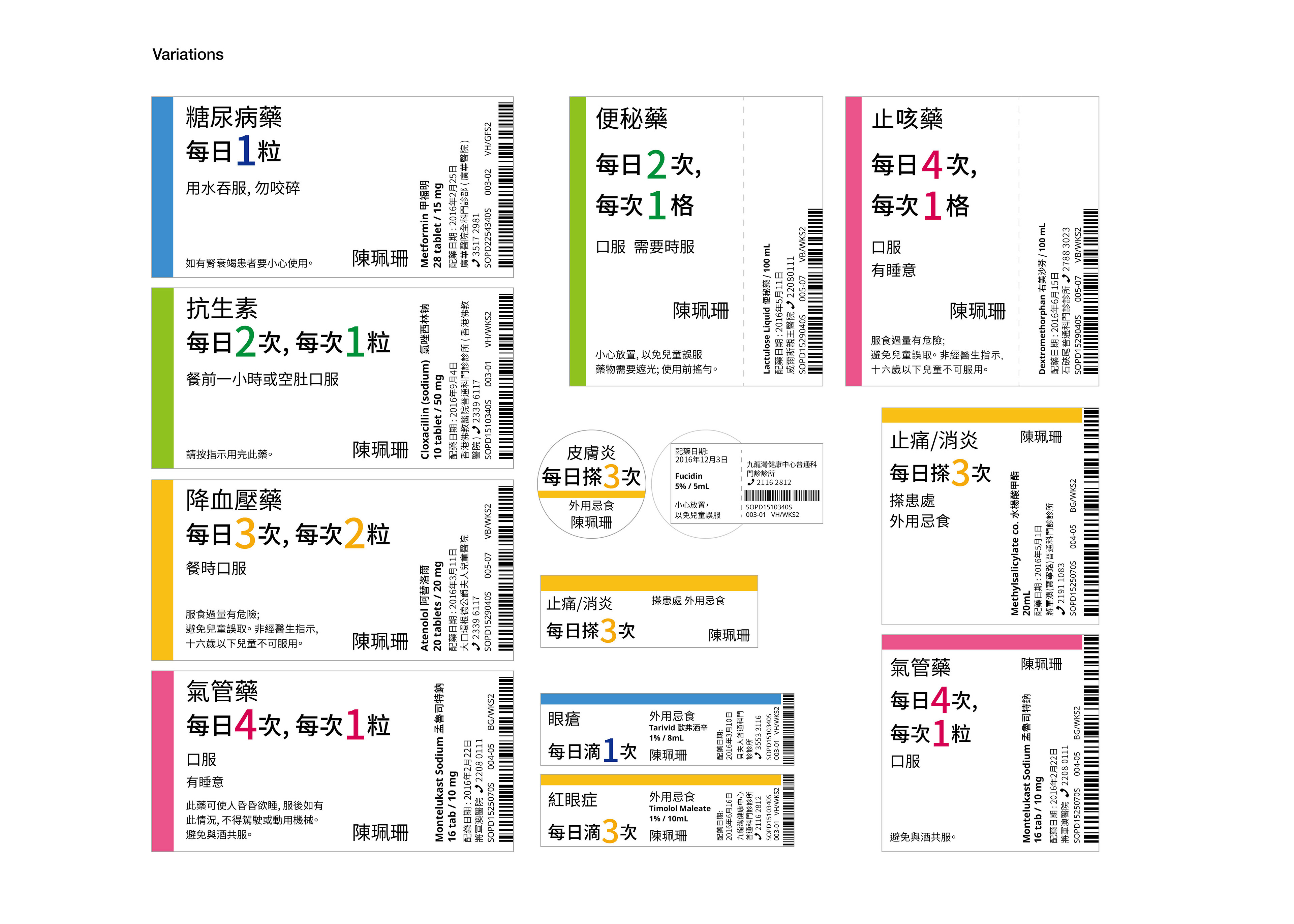 Redesigning current medicine labels from public hospital or healthcare centre in Hong Kong, with several user tests throughout design development, in order to meet the needs of the elderly—one of the major user groups of medicines.